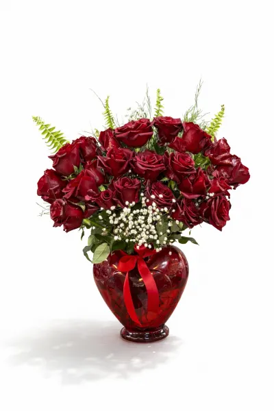 Kalpli vazo içerisinde 21 taze gül aranjman